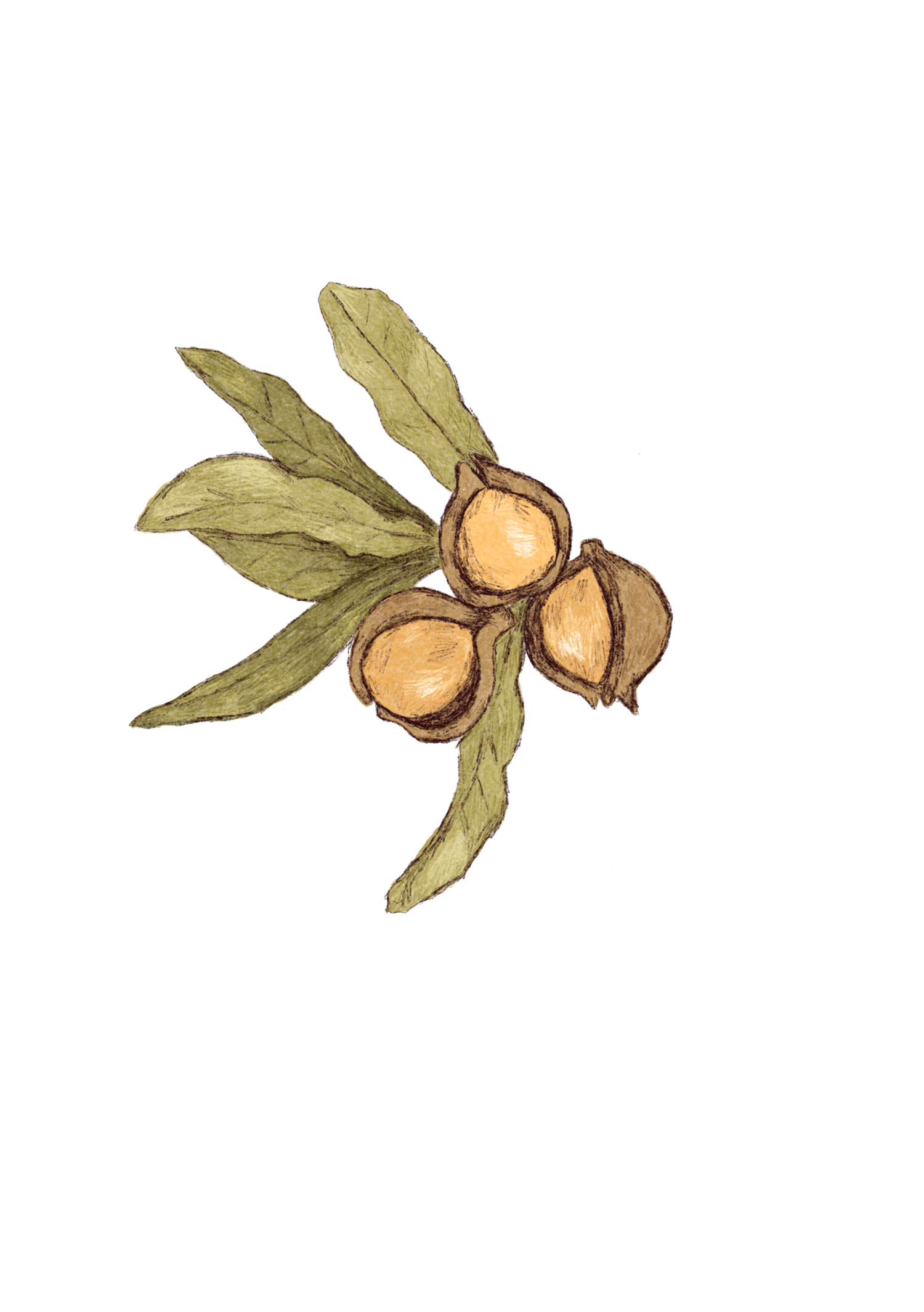 Macadamia nuts produce an oil that is deeply restorative for all skin types. Naturally rich in Omega 3,6 & 9, Squalene, Linoleic and Oleic acid, it reduces inflammation, irritation and moisture loss whilst, promoting skin cell regeneration. It’s lightweight and non-comogenic, leaving your skin soft and smooth without heaviness.